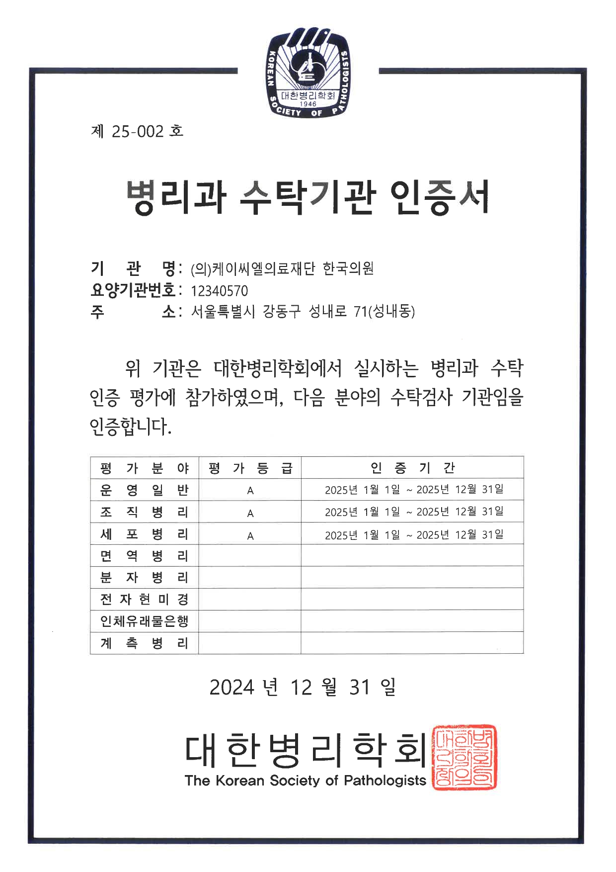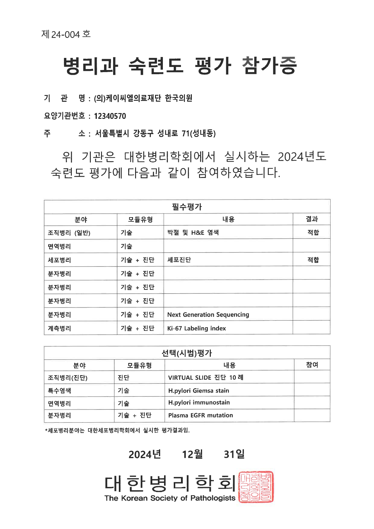 번호 제목 작성자 등록일 조회수 대한진단검사정도관리협회 신빙도조사참가증 PDF CAP CERTIFICATE OF ACCREDITATION PDF CAP 외부정도관리 참가증 PDF 진단검사 수탁기관 인증내역 PDF ISO9001 인증서 JPG JPG 임상검사 신빙도조사사업 참가증 PNG 임상검사 신빙도 조사사업 품질 인증서 PDF 진단검사의학 수탁기관 인증내역 PDF 수탁기관 인증내역 PDF 우수검사실 신임 인증서 PDF 진단검사의학 수탁기관 인증서 PDF 병리과 정도관리 인증서 JPG 병리과 숙련도 평가 참가증 JPG 병리과 수탁기관 인증서 JPG 새 글 등록