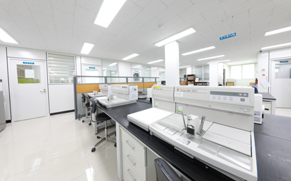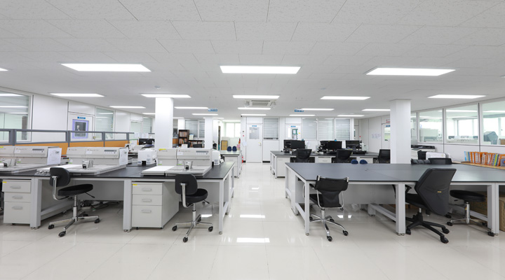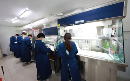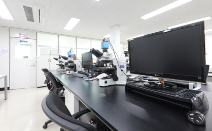 검사부안내 진단검사 분자진단 조직병리 세포병리 Cerviray AI System 장비소개 대용량 검체처리 Processing of Large Samples 신속한 결과 보고 Faster Reporting System 전문성 향상 Advanced Professionalism 숙련된 인력구성 Formation of Skilled Workforce 검사 품질 강화 High Quality Improvement 정도 관리의 선두주자 Front Runner of Quality Control 생검 혹은 수술로 절제된 검체를 육안 검색-고정-수세-탈수-투명-침투-포매-삭정-박절-염색-봉입 등의 과정을 거쳐 병리 전문의가 현미경으로 판독한 후 진단 필요에 따라 여러 감별 진단을 위한 H&E 염색과 특수염색 등을 시행하는 부서입니다. 병리검사실