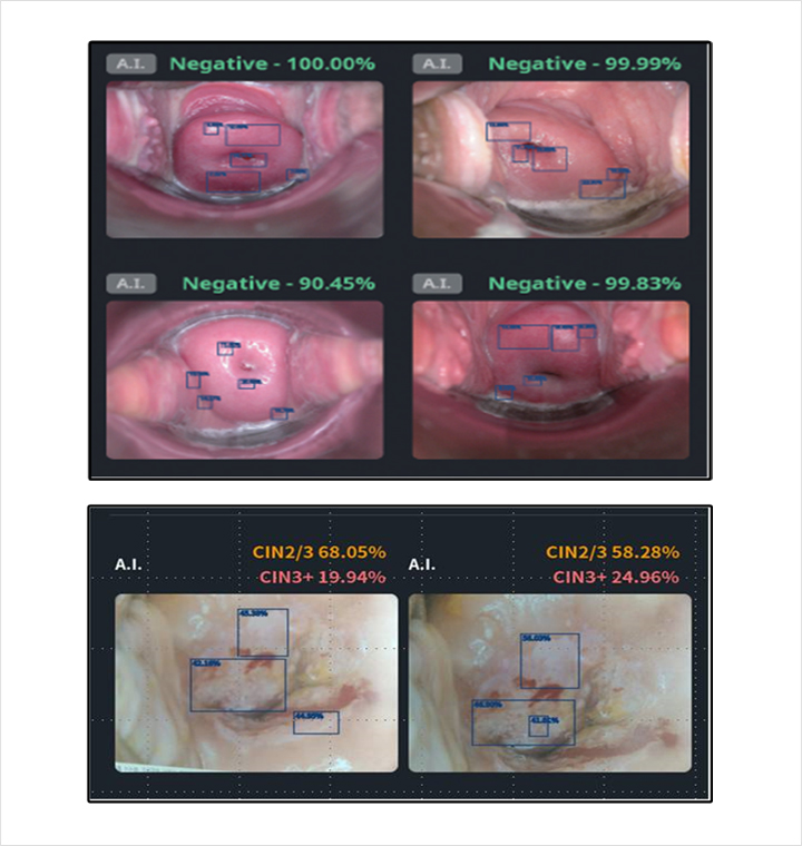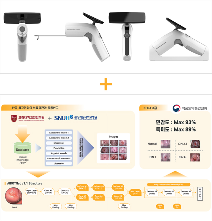 인공지능 기반의 자궁경부암 원격판독 시스템으로. 케이씨엘의료재단의 자궁경부암 검진 노하우로 만들어진 하드웨어 + 인공지능으로 특화된 아이도트의 자체개발 인공지능 알고리즘(AIDOTNet v1.2)을 통해 학습된 소프트웨어로 구성된 시스템 입니다.