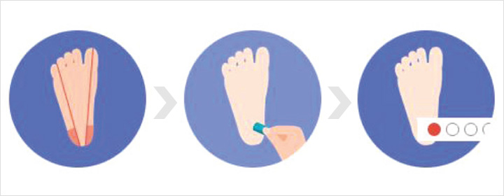- 02 발뒤꿈치의 외측부를 소독한 일회용 란셋(2.4mm point 이하)을 이용하여 천자합니다.