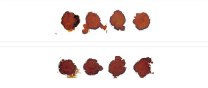 - 06 혈액여지는 오염물질이 없는 평평한 곳에서 실온상태로 3~4시간 정도를 충분히 건조합니다. 수직으로 달아두거나 세워서 건조 또는 보관하면 혈액성분이 흘러내려 혈청분리가 일어날 수 있습니다.