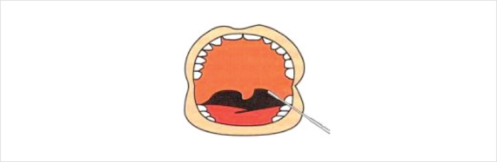 - ② 왼손으로 설압자를 잡고 설압자로 혀를 누릅니다.