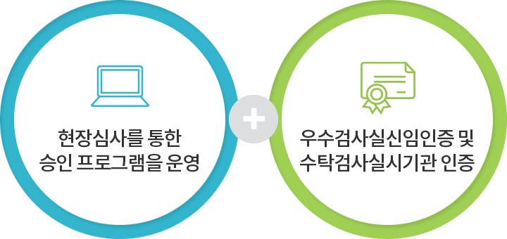 국내 외부 정도관리 프로그램은 대한임상정도관리협회가 주관 하에 대한진단검사의학회(The Korean Society for Laboratory Medicine)와 진단검사의학재단(Laboratory Medicine Foundation)에서 공신력있는 검사 품질을 인증하고 있습니다.