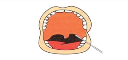 - ① 환자의 입을 벌리고 반드시“아-"하는 소리를 실제로 내게 합니다.